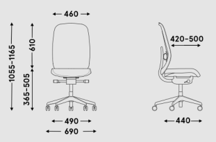 mécanisme synchrone avec réglage de la tension du dossier - angle d'inclinaison du dossier 20° et de l'assise 9°, conçu pour une charge entre 45 kg et 120 kg, 4 positions de blocage du dossier ;