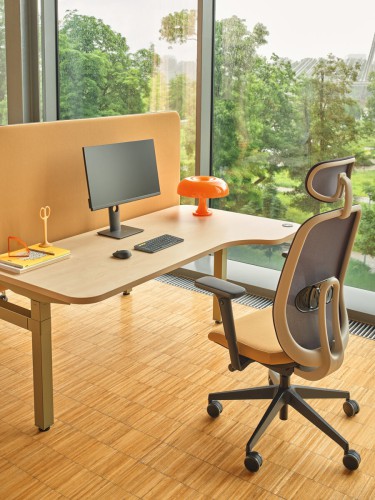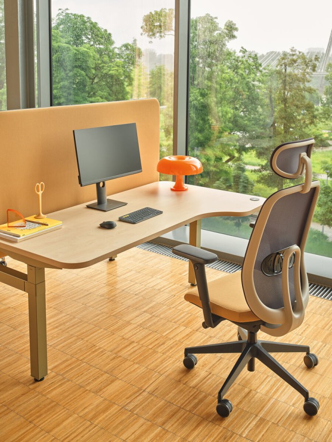 La base pivotante cinq étoiles avec roulettes permet une position assise dynamique, facilite le passage à la position debout et le déplacement au bureau. Le dossier est disponible en plusieurs couleurs pour faciliter l'adaptation de la chaise à l'agencement.