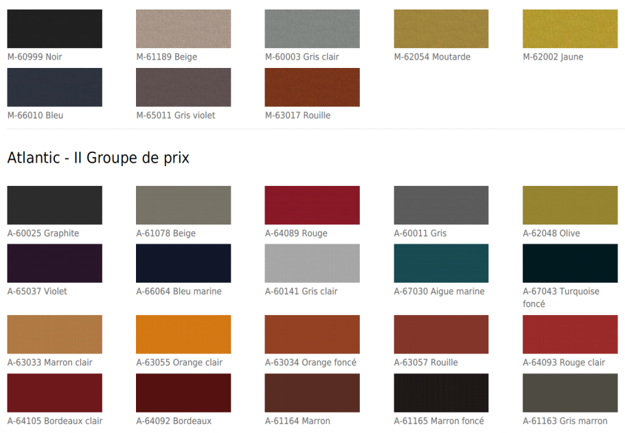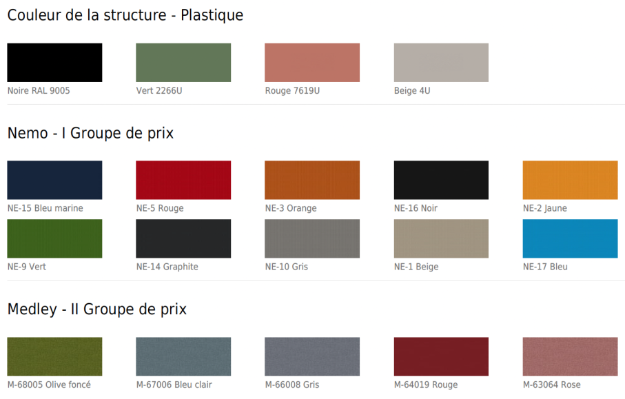 résille, couleur assortie à la structure ;