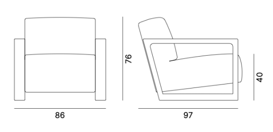 Pied/accoudoir en frêne vernis naturel, noyer, orme ou gris ombre.