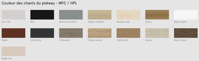 MFC 18 mm, bords ABS 2 mm ;